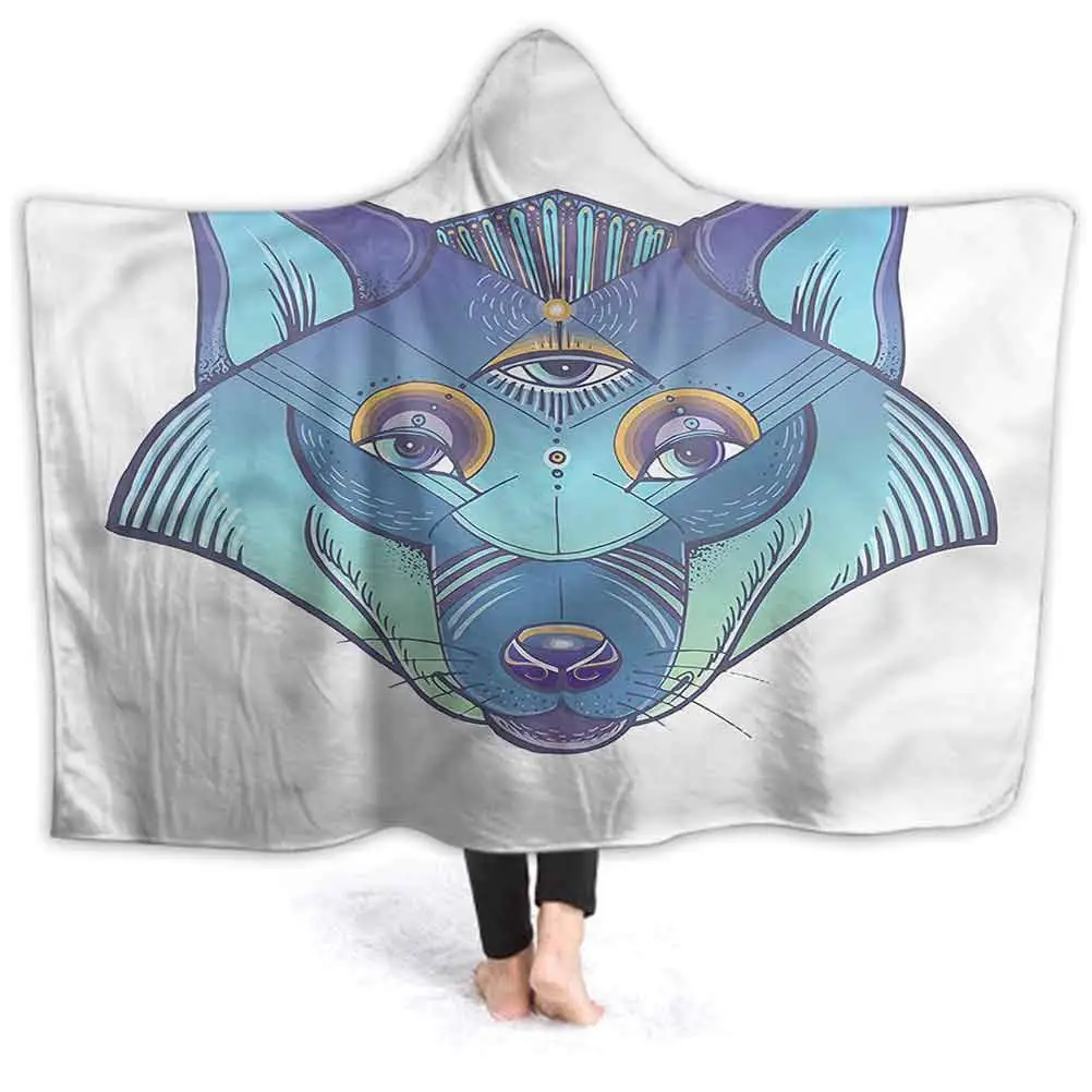 Одеяло с капюшоном Fire Snow Wolf, толстые теплые одеяла с капюшоно...