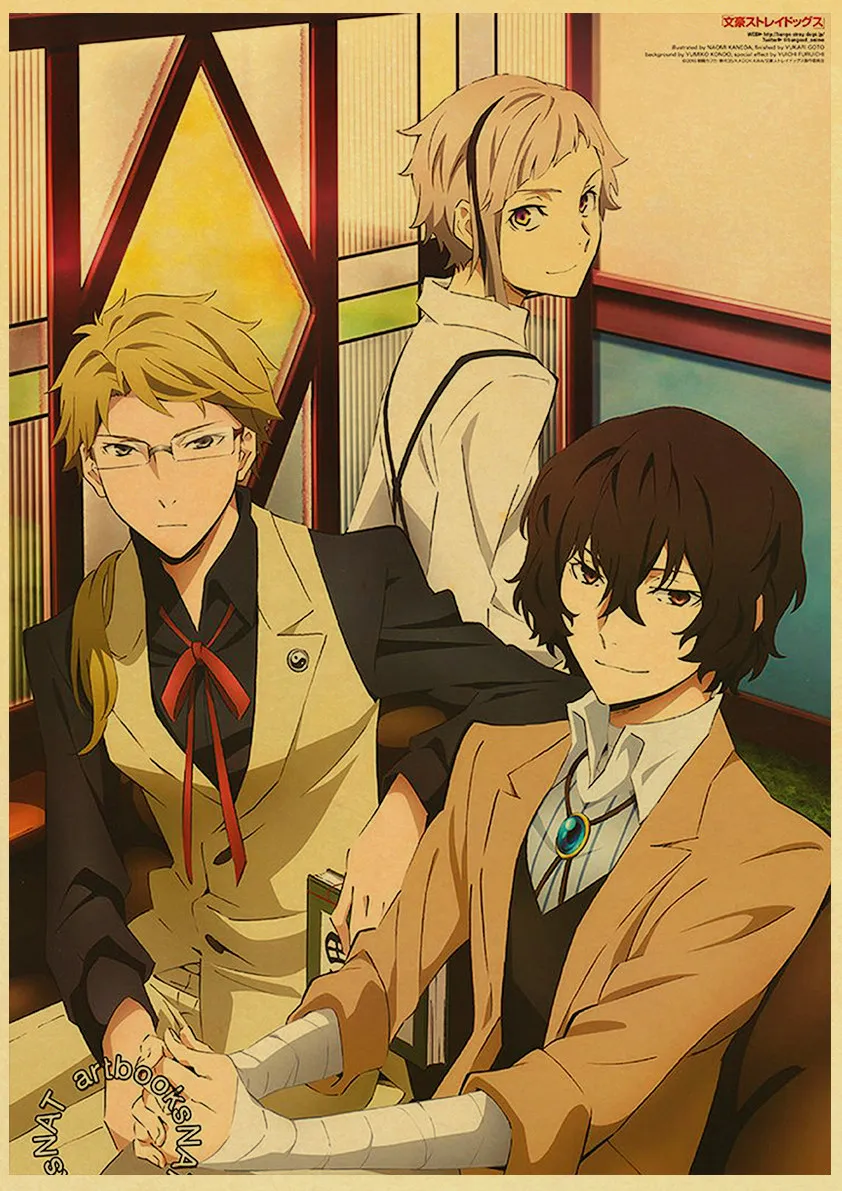 Постер buy3get4японского аниме бродячие псы, крафт-бумага в стиле р...