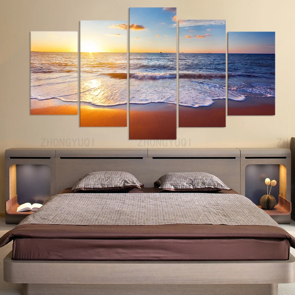 Картина на холсте, 5 панелей, восход, морской пляж, закат, пейзаж, настенное искусство, домашний декор, Модульная картина, плакаты и принты для гостиной