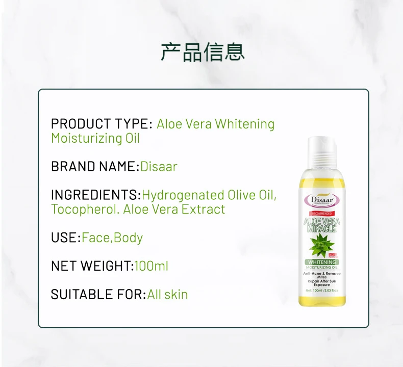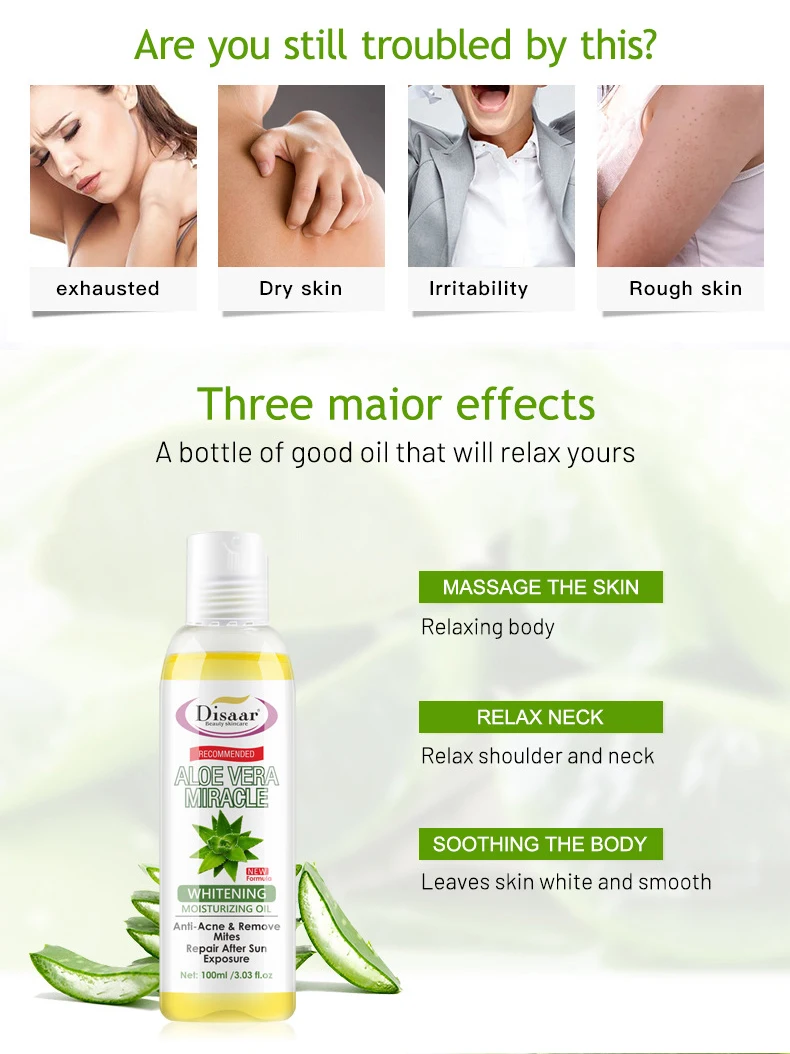 Отбеливающее увлажняющее масло с алоэ вера, против акне, удаление клещей, успокаивающее масло для тела, укрепляющее массажное масло для кожи, 100 мл
