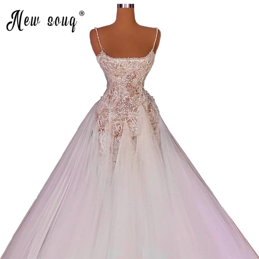2021 блестящее вечернее платье на тонких бретельках с бусинами длинное 2021 свадебное платье трапециевидной формы исламское турецкое Пышное Платье