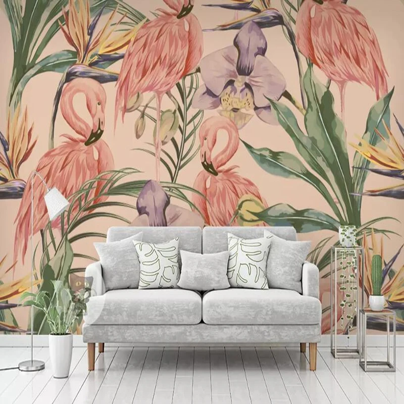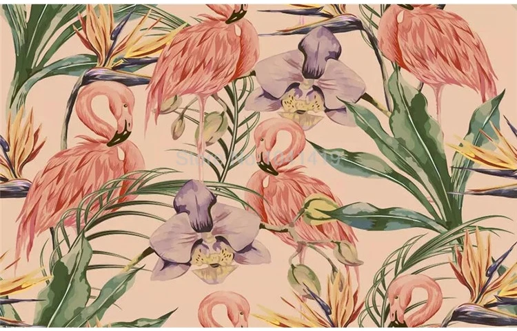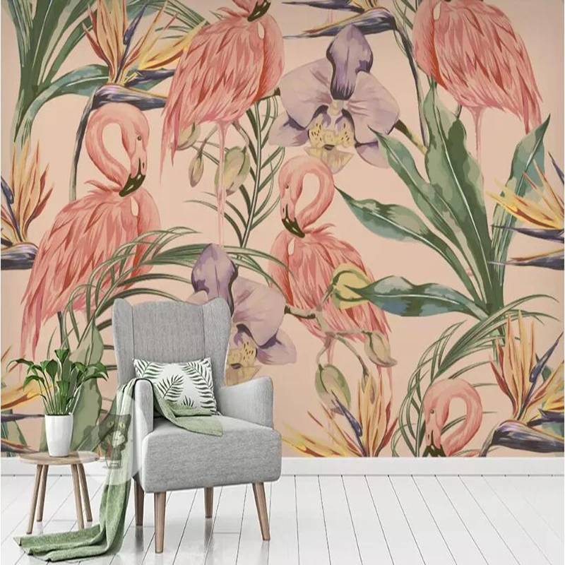 На заказ любой размер обои 3D Фламинго Цветок Птица растение тропический дождь лес фон настенная живопись Гостиная фрески