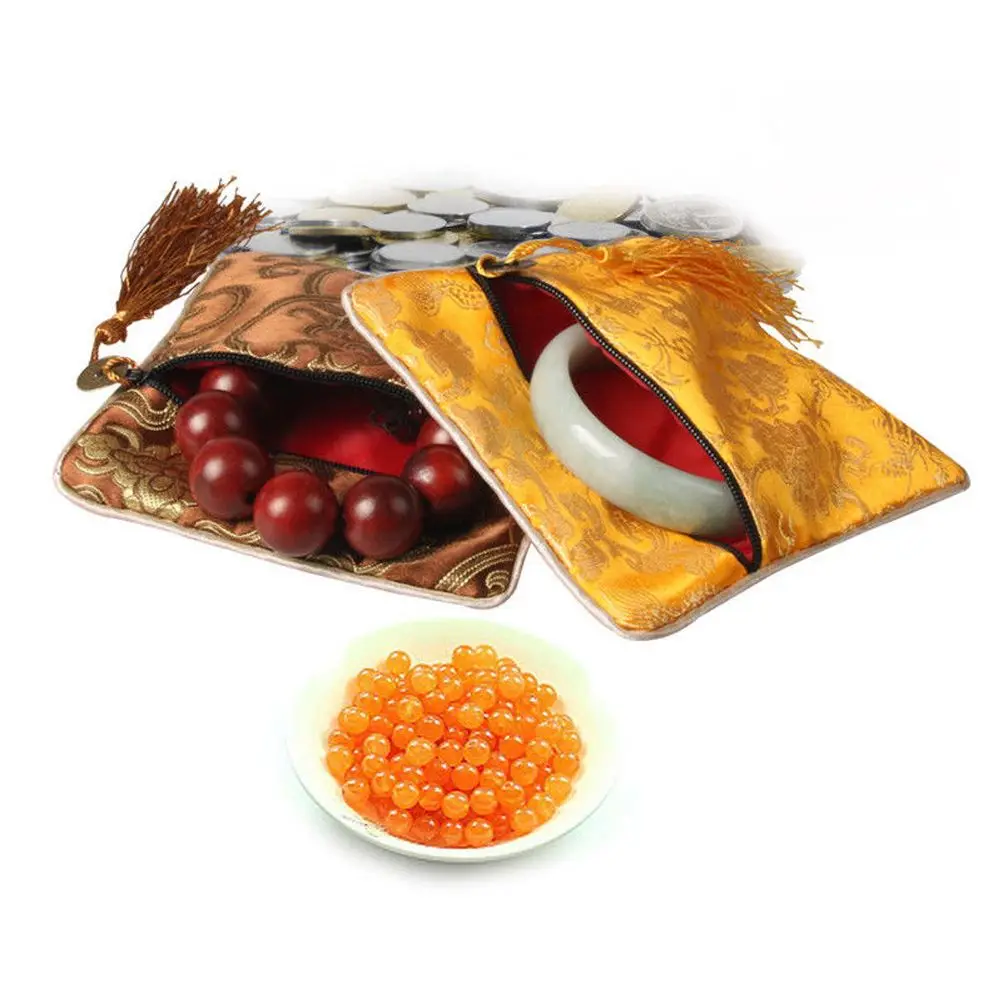 Цветочная тканевая сумка, шелковая парча, кисточка, квартет, молния, Упаковочная Сумка, ювелирная монета, кошелек, подарочная упаковка, 1 шт.