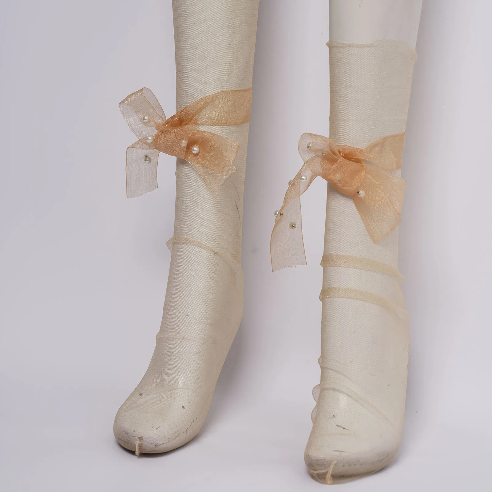 В комплект входит: 1 пара носков Состояние: абсолютно новый Материал: нейлон + искусственный жемчуг