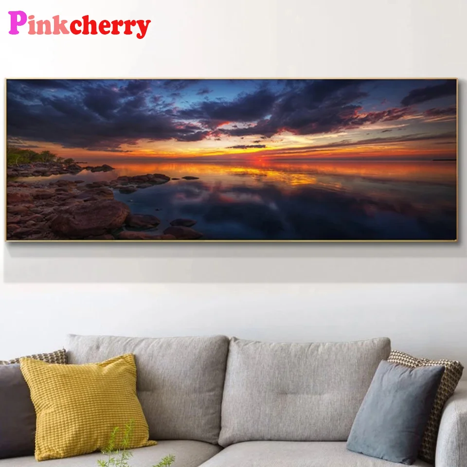 100% квадратная круглая алмазная живопись Природное золото небо закат 5d алмазная Вышивка Узор мозаика озеро дерево пейзаж 3d искусство,