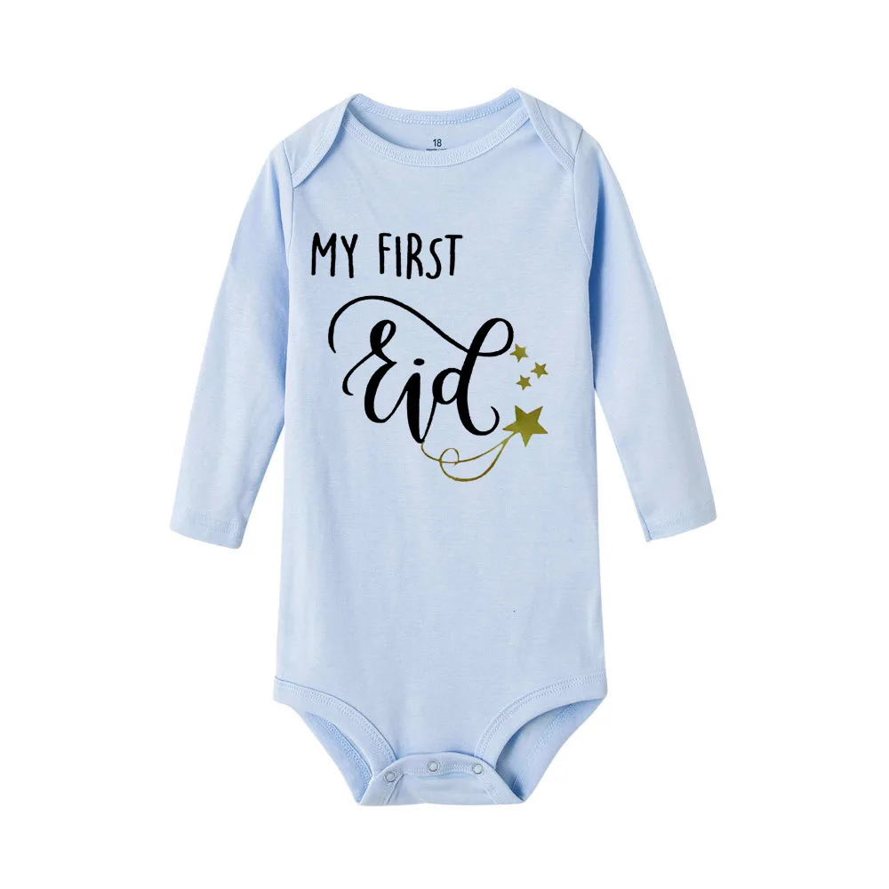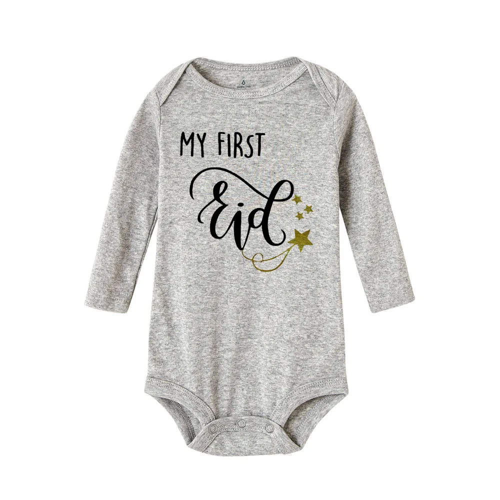 Новинка 2021 года; Детский комбинезон с длинными рукавами; Повседневные Комбинезоны с надписью «My First Eid» для мальчиков и девочек; Одежда для новорожденных; Лидер продаж; Подарки для малышей
