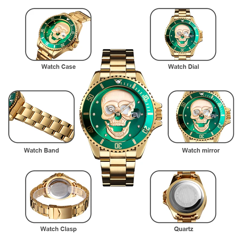 Часы наручные SKMEI Мужские кварцевые с черепом, креативные водонеп...