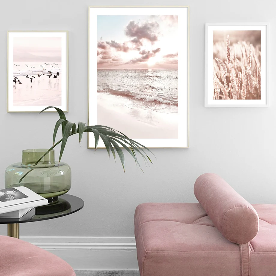 Одуванчик Рид зерна песка закат птица пляж скандинавский плакат нас...