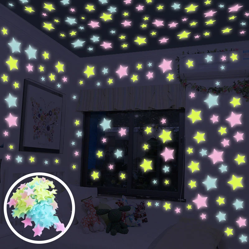 Флуоресцентные светящиеся наклейки на стену, 100 шт., с 3D-эффектом, светится в темноте