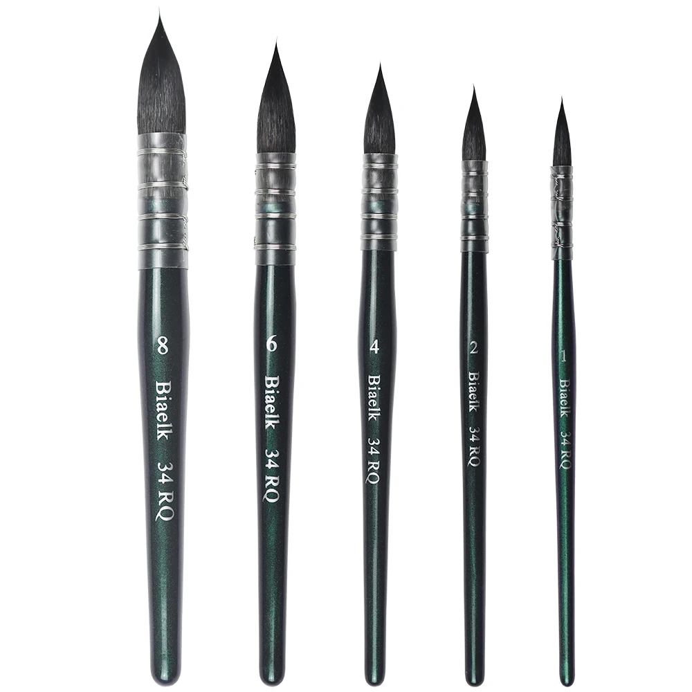 5 шт.лот 34RQ высококачественная кисть из беличьей шерсти с деревянной ручкой для рисования акварелью
