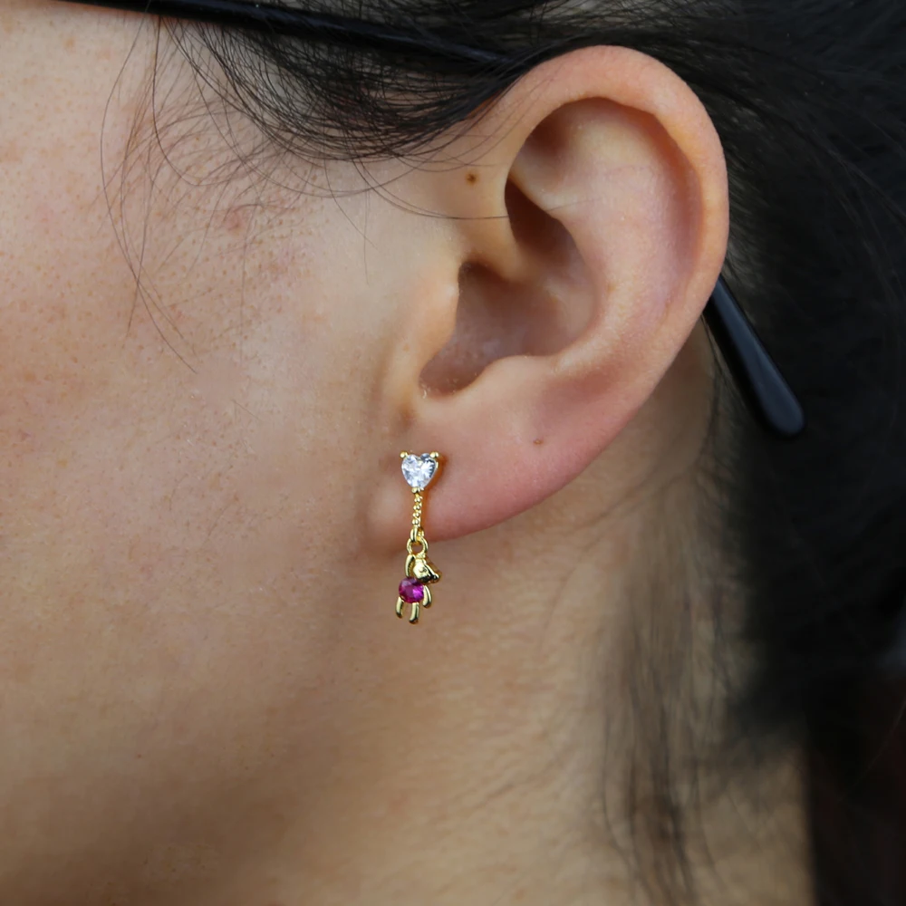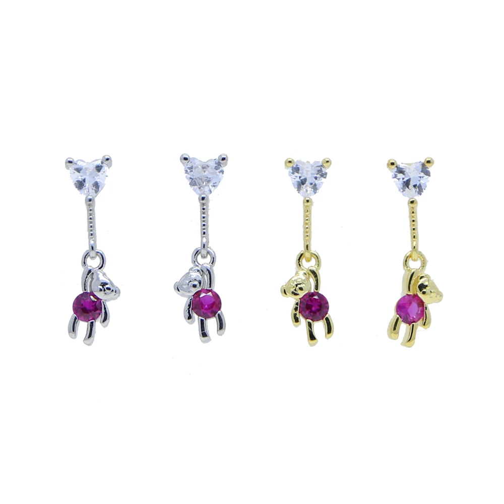 2021 новый дизайн Висячие серьги, позолоченные, с белым красным сердцем CZ медведь, обнимающий Шарм, милое симпатичное животное ювелирные изделия для девочек