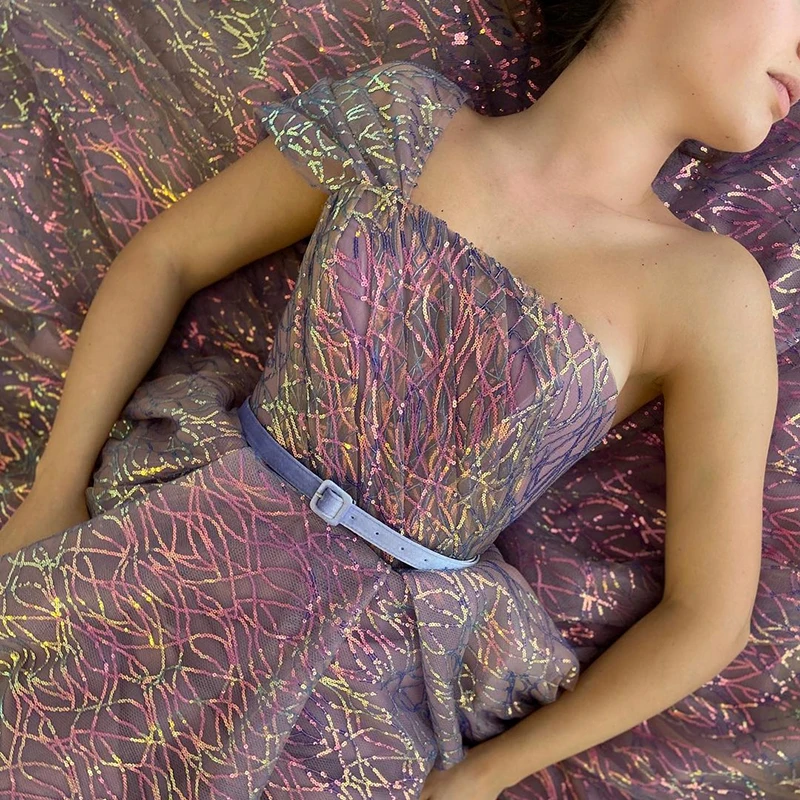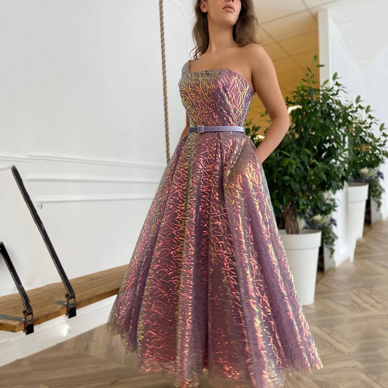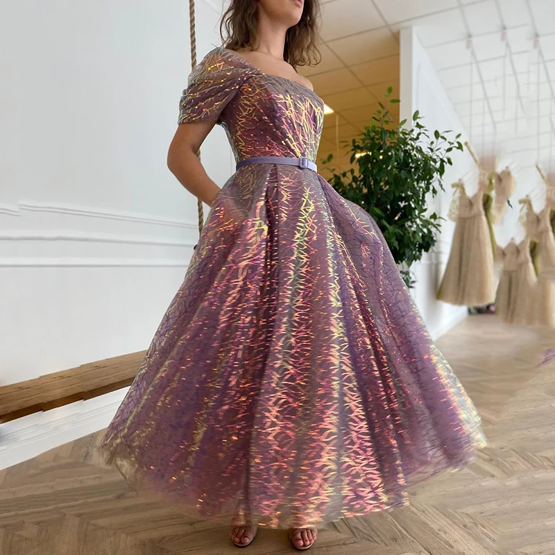 Блестящее кружевное платье-трапеция UZN, на одно плечо, с рукавами-крылышками, с карманами, с блестками, Саудовская Аравия, вечернее платье на заказ