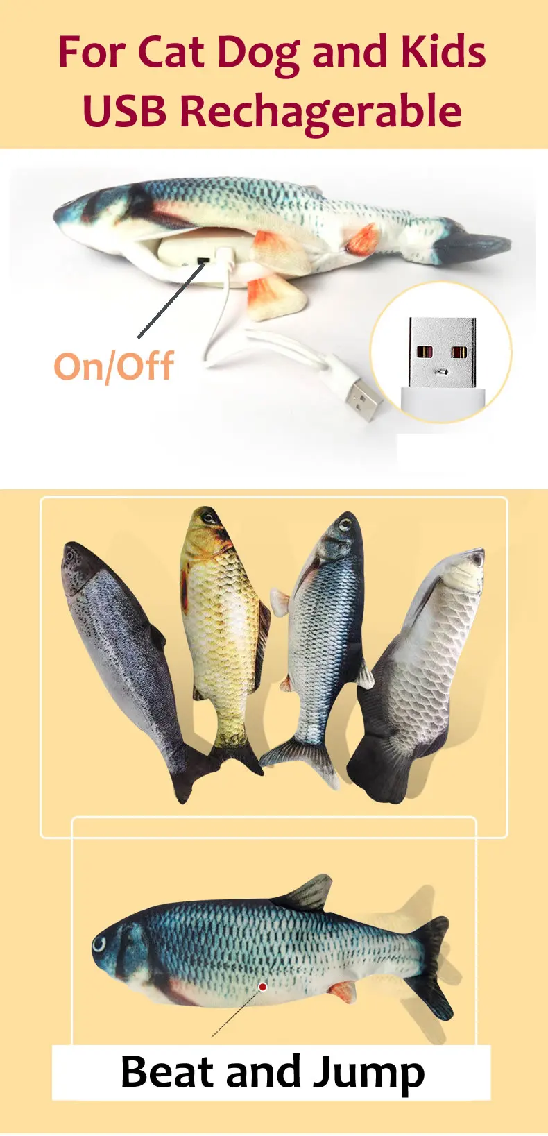 Кошки полюбят эту игрушку-рыбку, когда увидят ее с первого взгляда!Они похожи на настоящую рыбу, и электрическая провисающая рыба также может перемещать хвост, чтобы привлечь кошек, чтобы поймать их. С мятой внутри игрушечной рыбы, ваша кошка может наслаждаться особым запахом и оставаться в восторге в течение нескольких минут.Когда кошка влюбляется в рыбу, просто дайте ей ее получить.Особенности:Супер реалистичная игрушка в виде рыбы: Рисунок высокой четкости, просто выглядит как настоящая рыба. Не легко выцветает после долгого воспроизведения.Стойкий сильный аромат может притягивать кота к себе, чтобы он был взволнован или более.Удобный плюш: плотная Нетоксичная и мягкая ткань с отличной устойчивостью к царапинам и укусам не наносит вреда котам, укусывающим и лизывающим.Подвижный хвост: эффект провисания настолько Забавный, что привлечет внимание кошек. (Только для провисшей рыбы)Удобная зарядка через USB: поставляется с перезаряжаемой литиевой батареей. Может заряжать его с помощью зарядного устройства, компьютера или смартфона. (Только для провисания рыбы)Легко чистить: аккумулятор/мешок с мятой можно легко удалить, чтобы вы могли мыть игрушку, если она пачкается.