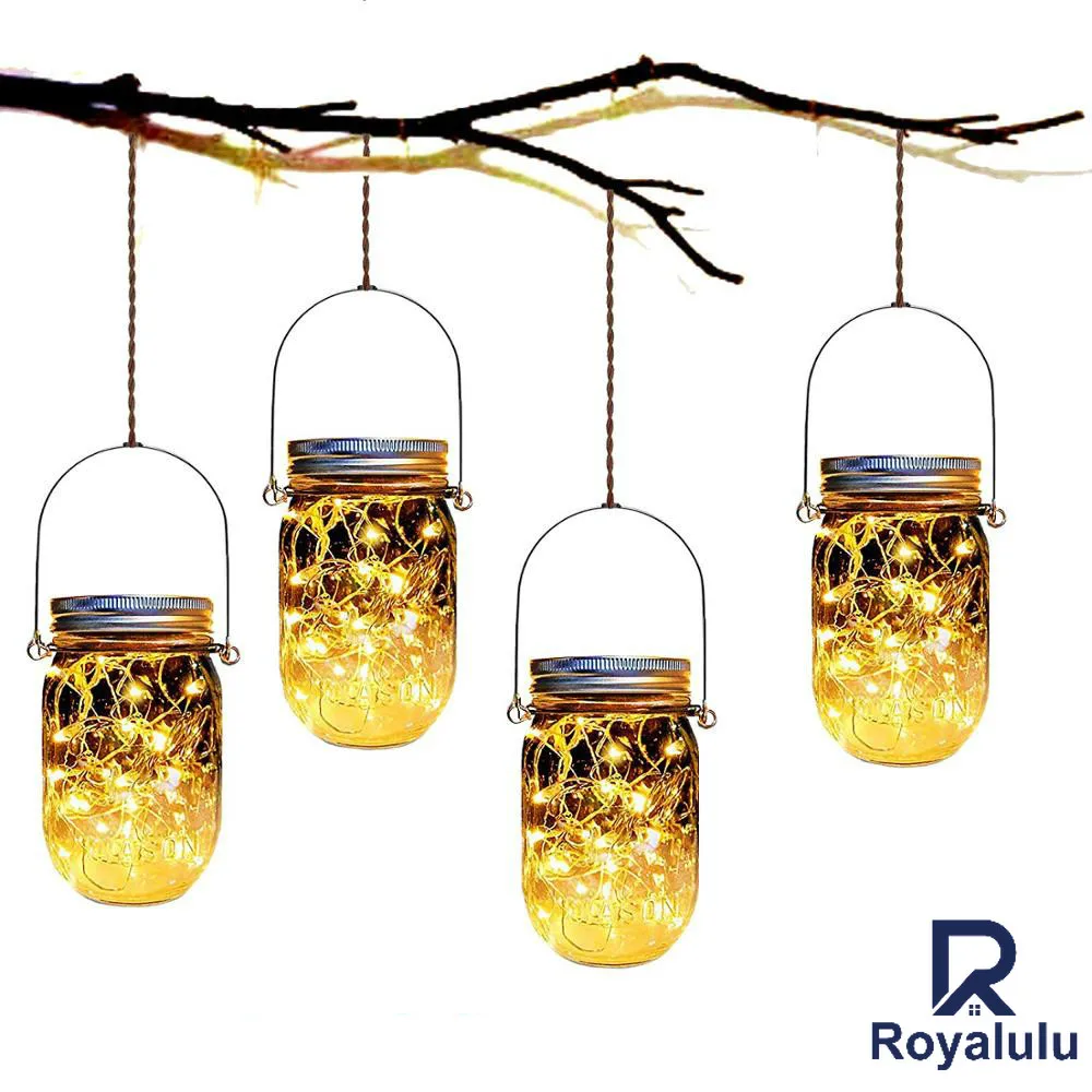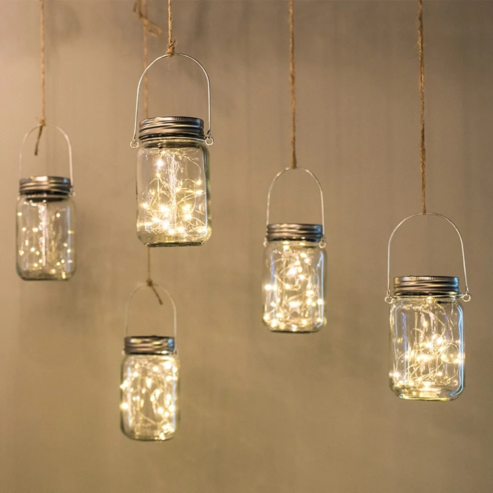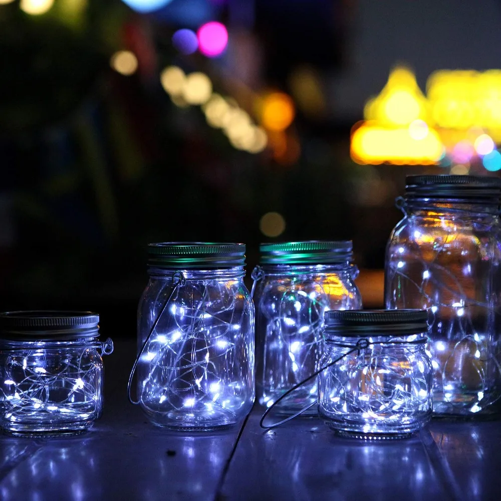 8 шт.компл. стеклянная банка с завинчивающейся крышкой солнечный светильник s с 8 ручек 10 светодиодов светящиеся гирлянды с принтом Светлячок светильник крышкой подвесной светильник декора сада