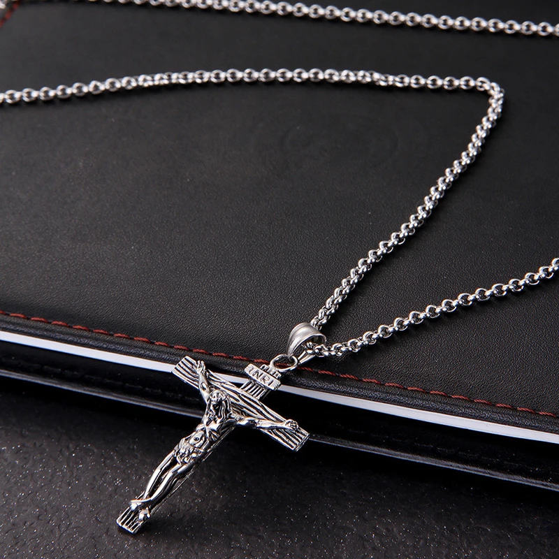 Мужская цепочка Ювелирные украшения с христианской символикой подарки Винтаж крест Распятие INRI Иисус кусок кулон Золотое украшение на шею с Цвет из нержавеющей стали