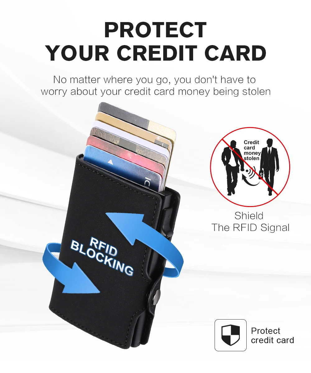 Многофункциональный тонкий бумажник держатель для карт блокирующий Rfid алюминиевый небольшой для женщин и мужчин чехол-портмоне из искусственной кожи (полиуретан) с карман для удостоверения личности-коробка