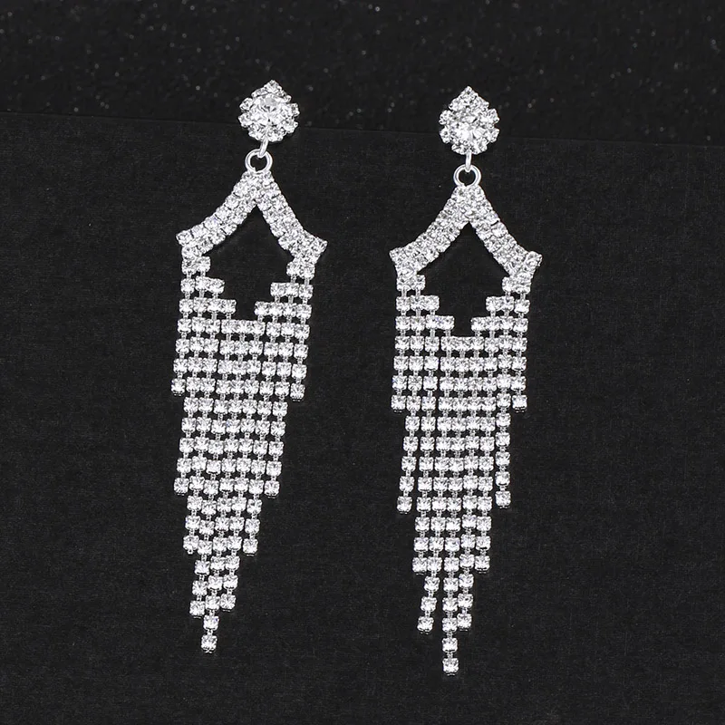 Серьги-подвески женские серебристого цвета, с кристаллами, стразы