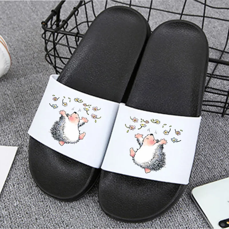Шлепанцы женские с рисунком ежа, Симпатичные домашние тапочки, пляж...