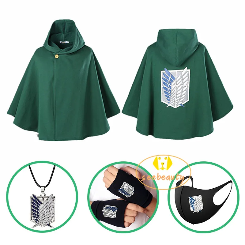 Плащ аниме Атака Титанов, перчатки, ожерелье, накидка атака на Титанов для косплея, скаутинга, легиона, крыльев свободы, Леви Акермана, 4 шт.
