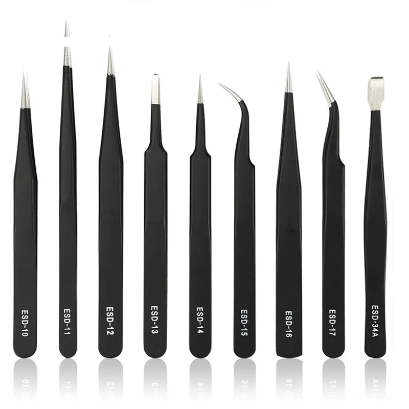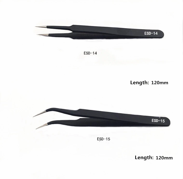 Антистатические пинцеты 1,5 мм из нержавеющей стали, изогнутые и точные инструменты для технического обслуживания, 1 шт.