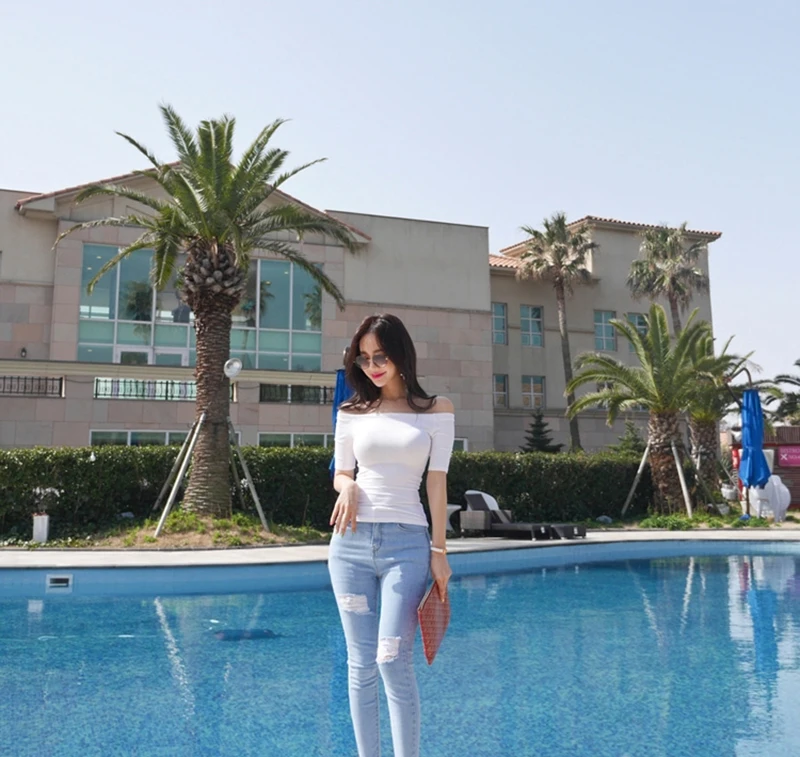 Новый тонкий летний топ с вытянутым носом, T рубашки для женщин эластичные футболки Женский в Корейском стиле одежда тонкий футболка Женские повседневные топы с короткими рукавами