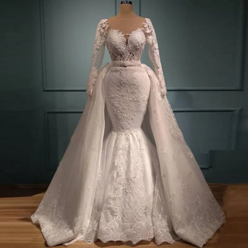 Женское свадебное платье с юбкой годе It's yiiya, белое кружевное платье со съемным верхом и длинными рукавами на лето 2019