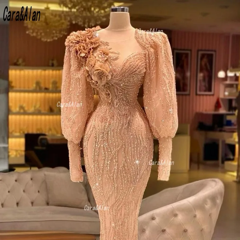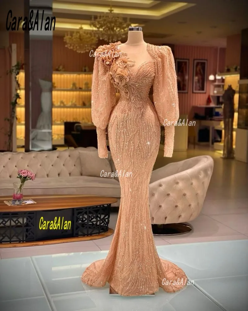 Вечернее платье из Дубая, с длинными рукавами и бисером, празднично...