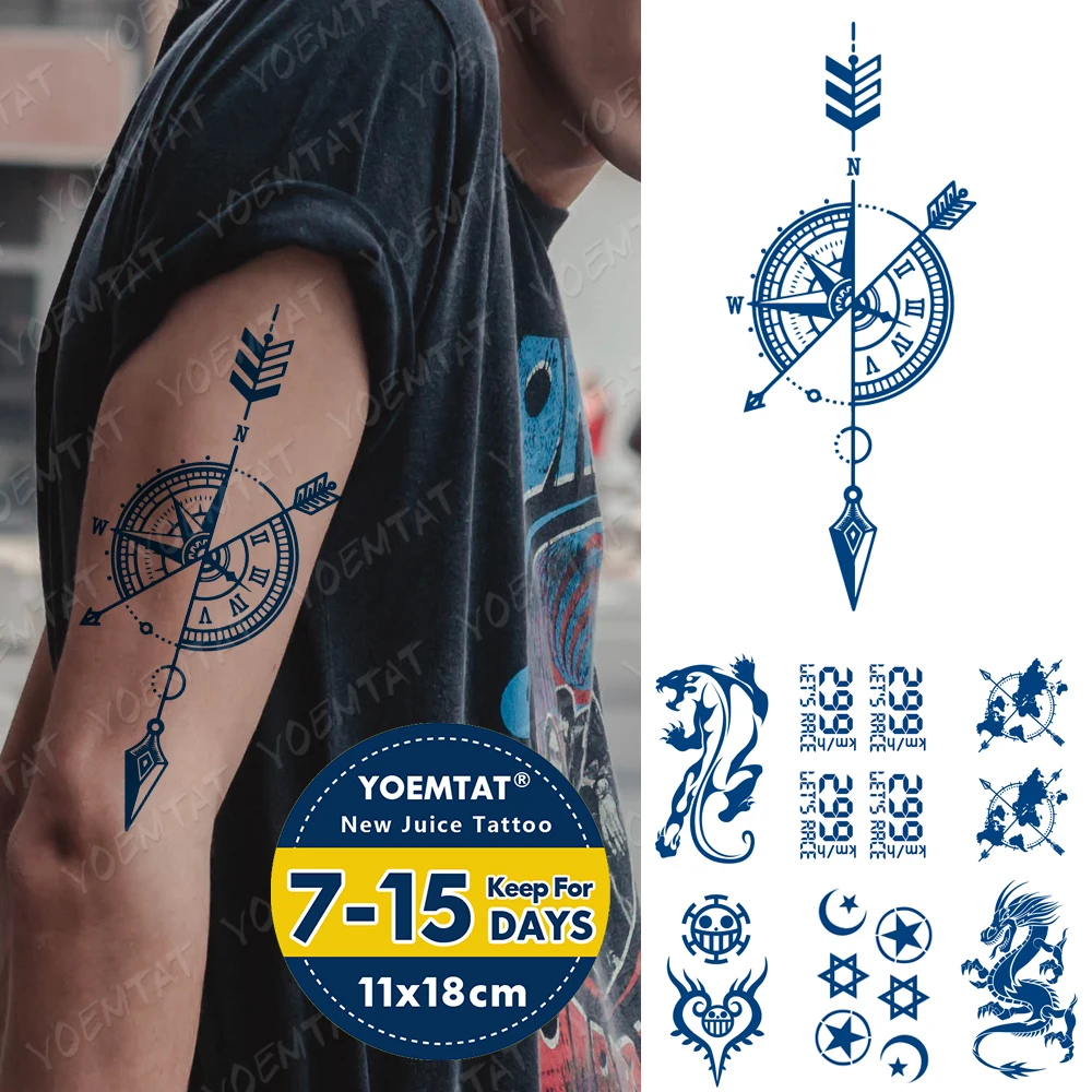Водостойкая Временная тату-наклейка Juice Ink, часы, компас, земля, флэш-тату для женщин, рук, бедер, боди-арт, искусственная татуировка для мужчин