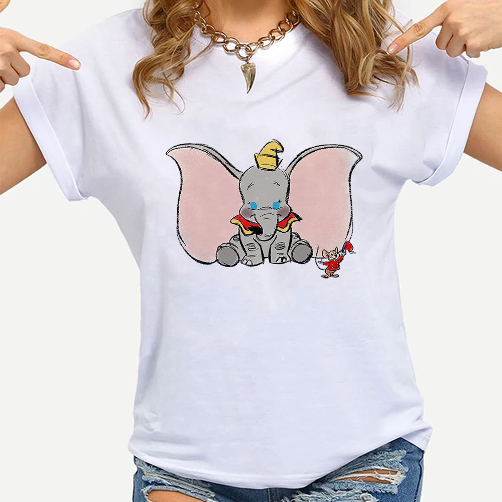 Футболка женская с принтом слона Дамбо, смешная Милая рубашка с кор...