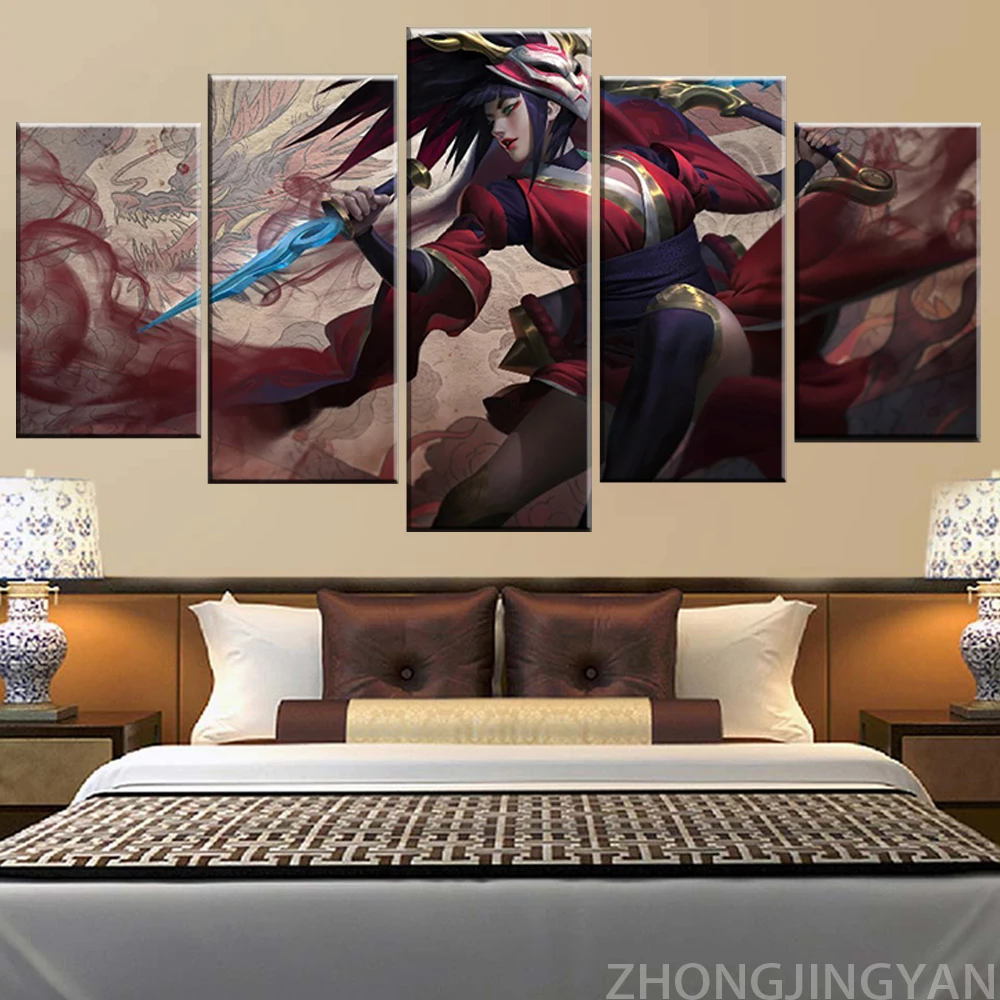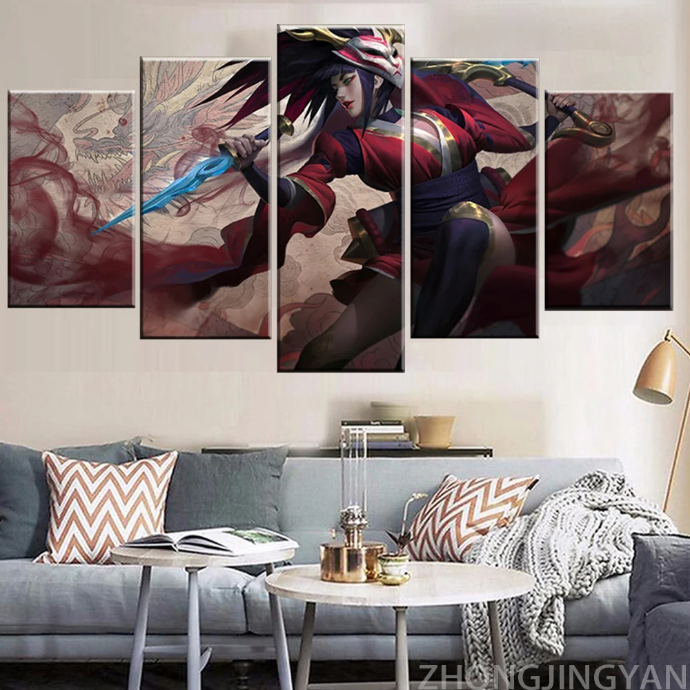 5 шт., декоративные настенные картины LOL League Legends Akali