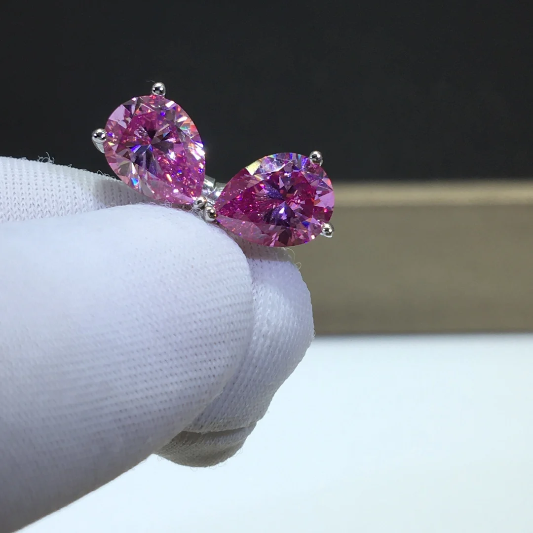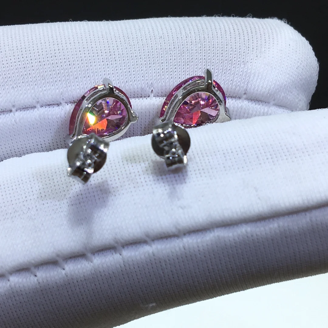 Серебро 925 оригинальный 1 компьютерная томография всего 2 карат розовый бриллиант воды после проведения испытаний, висячие серьги с муассанитом драгоценный камень серьги-гвоздики для женщин ювелирные изделия