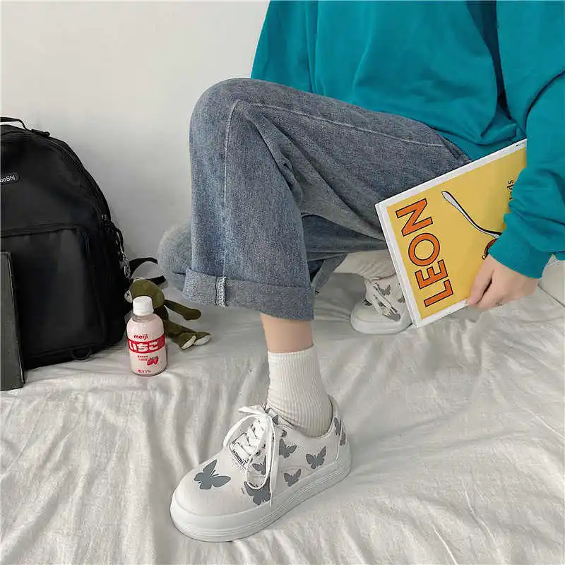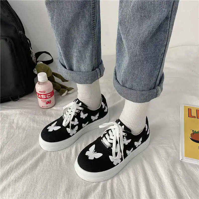 Обувь в стиле аниме Лолита, женские кроссовки на платформе, с принтом бабочек, милые спортивные Дизайнерские кроссовки для тенниса, женские повседневные
