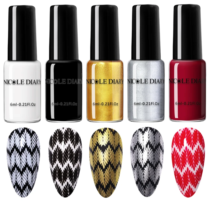 Лак для стемпинга NICOLE DIARY, 13 цветов, черный, белый, золотой, ...