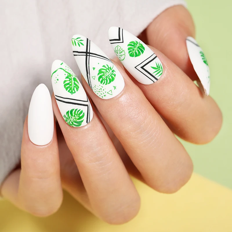Николь молочный черный белый стемпинг ногтей покрытие лак цветок Зм...