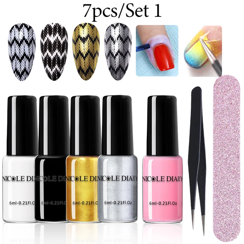 Набор для стемпинг ногтей покрытие NICOLE DIARY, съемная лента, Гель-лак, черная, белая, Золотая, серебряная, для печати штампов