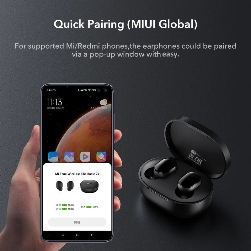 Для поддерживаемых телефонов Mi/Red mi наушники можно легко сопрягать через выдвижное окно.