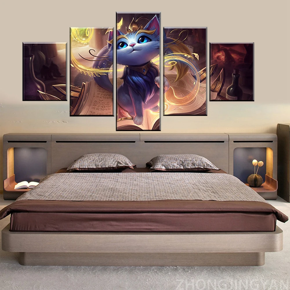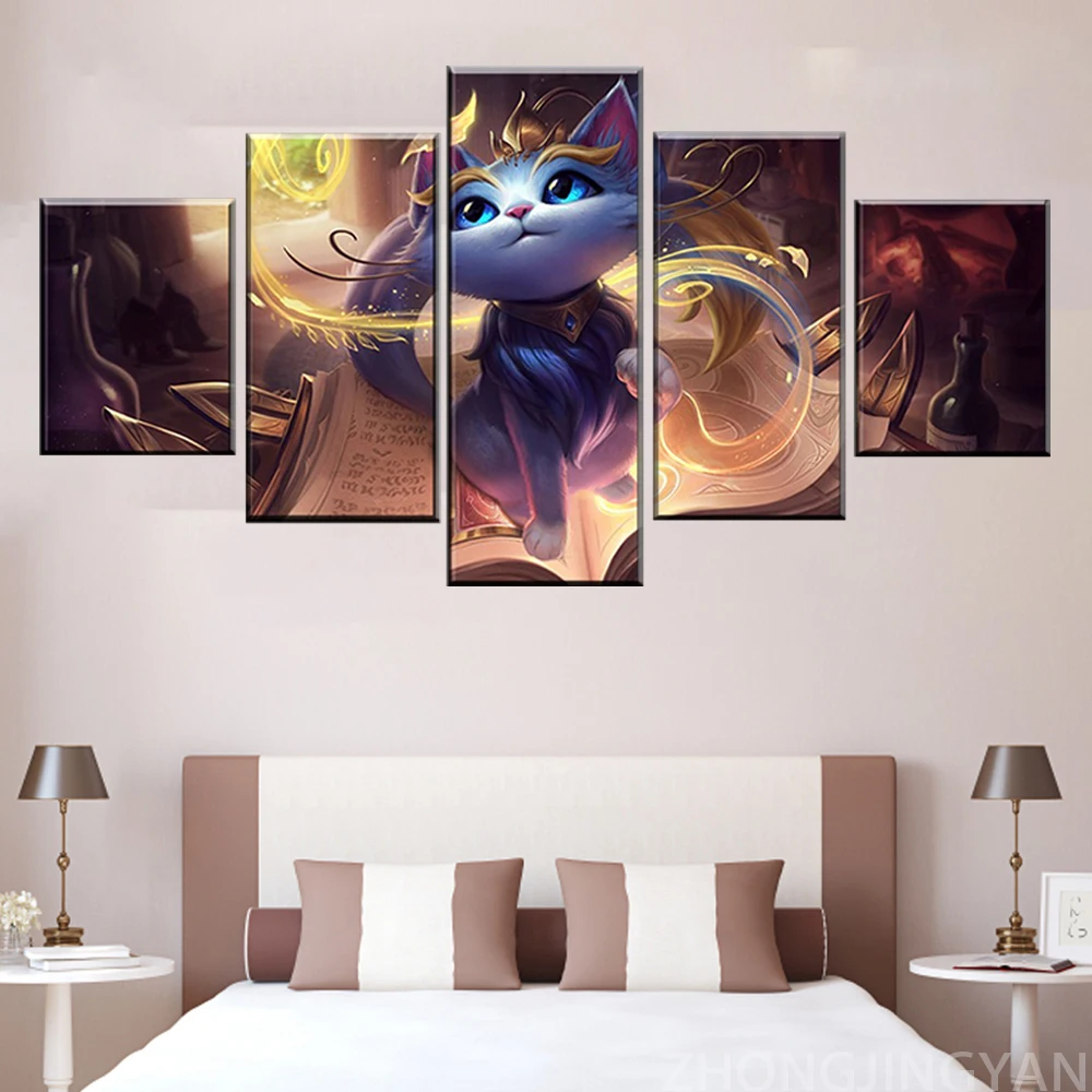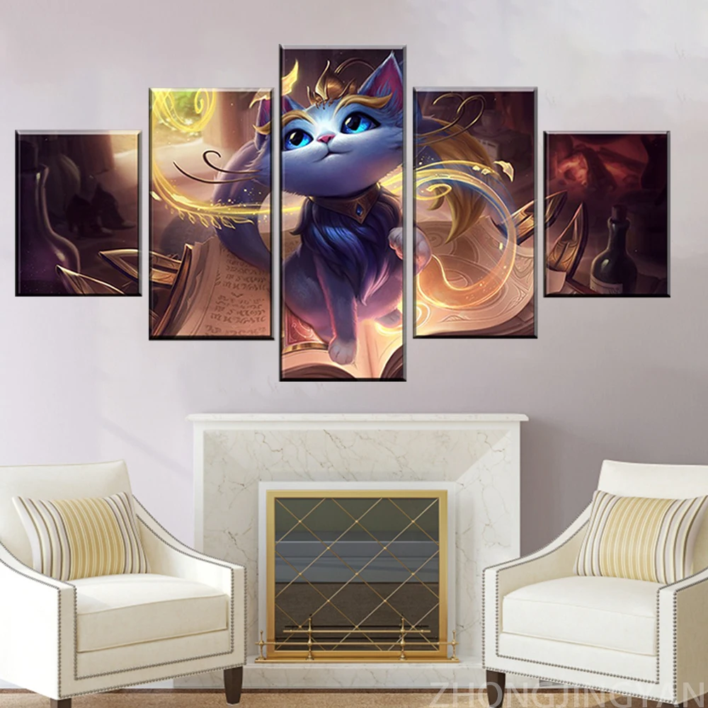 5 шт. Yuumi с надписью LOL Game плакаты, постеры HD с рисунком Милая картинка с кошкой Фэнтези художественная Настенная роспись для домашнего декора Квадро cuadros