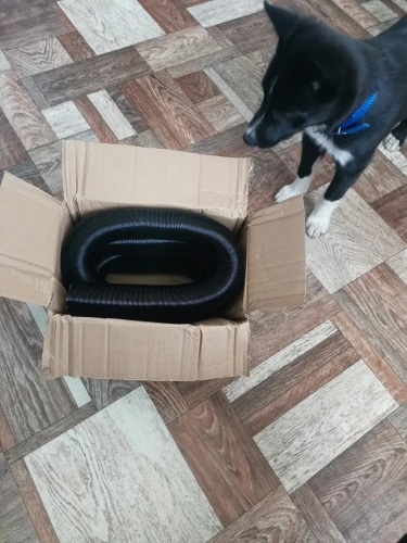 Шланг длинный (около 2 м), изготовлен из алюминия, что означает, что он может немного разрушиться во время доставки (мягкий мешок), но вы можете легко изменить его до его нормальной круглой/цилиндрической формы. Качество нормальное, но не выдающееся.