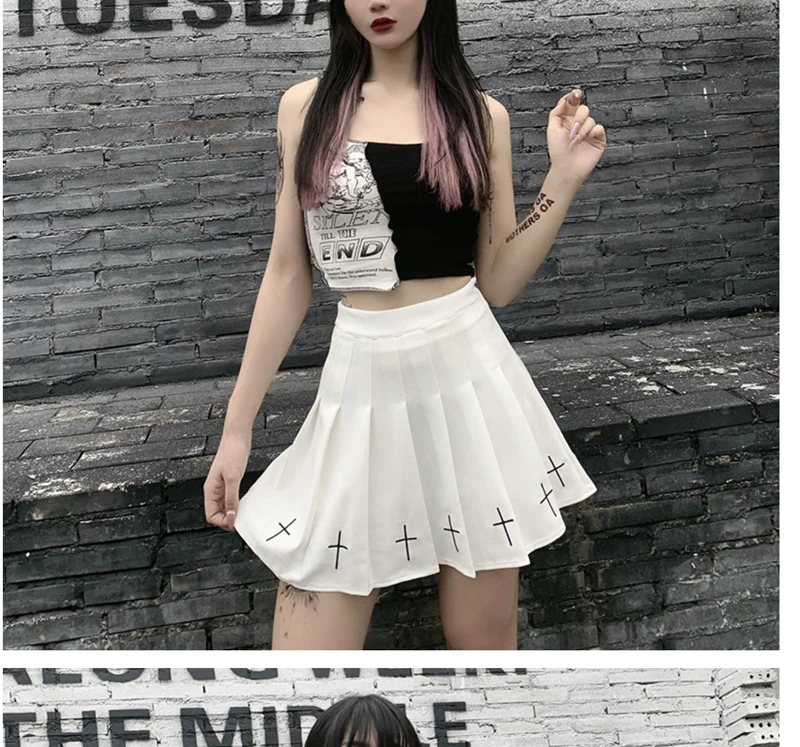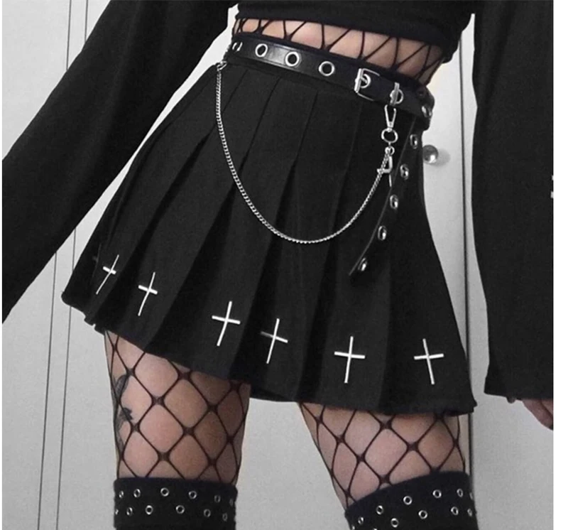 Женская плиссированная юбка, Летняя короткая юбка в готическом стиле
