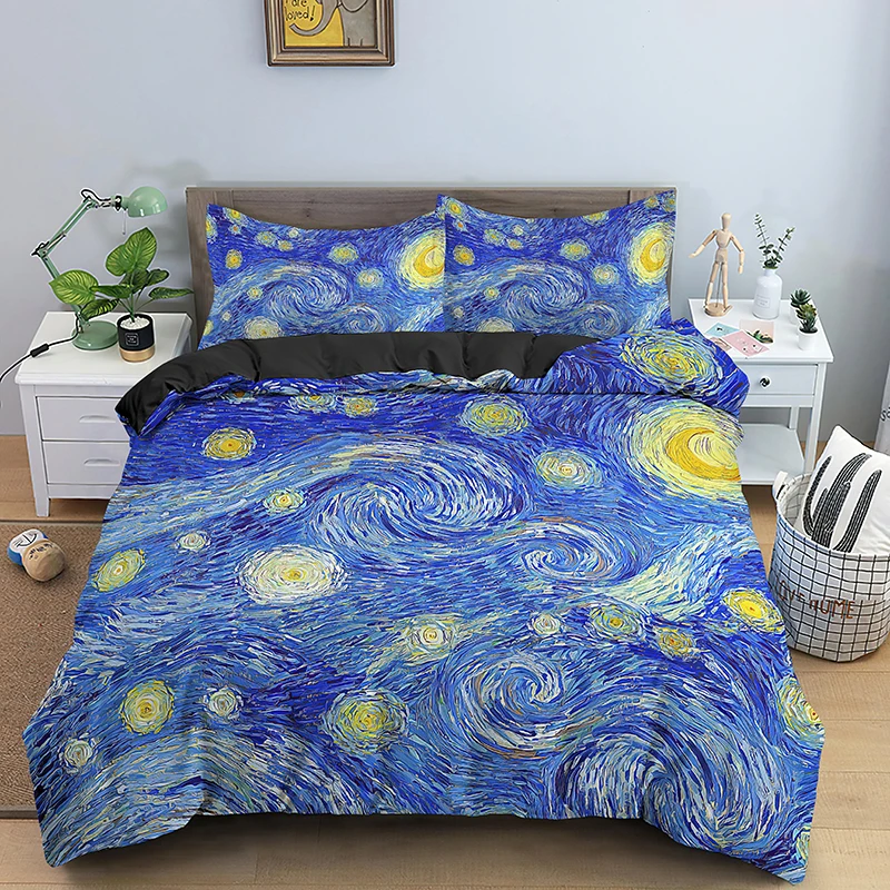 Комплект постельного белья, постельное белье, абстрактное синее одеяло с рисунком маслом, размер EUUSAUUK, односпальный, полный размер Queen King