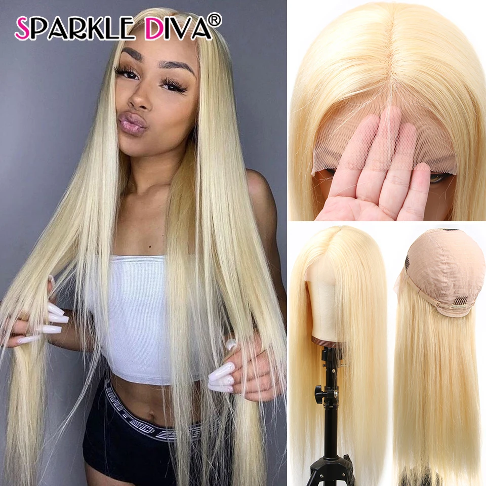Парик средней части 613 медовая Блондинка 13x1, парик на сетке, бразильские прямые человеческие волосы, парики для женщин 150 плотность, Remy 613, парик на сетке