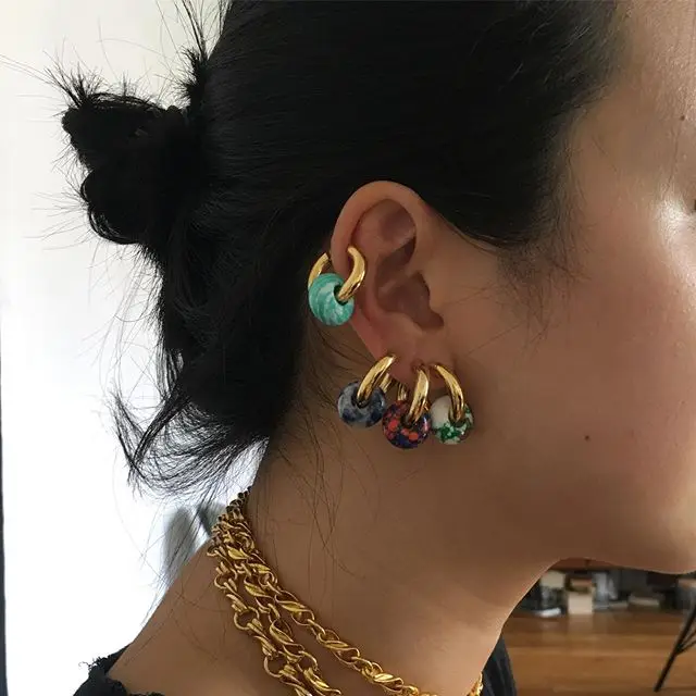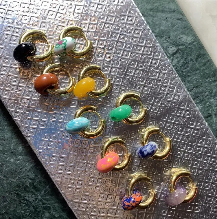 Богемные женские серьги-кольца, из нержавеющей стали, с крупным отверстием, с натуральными камнями, не совпадают, 2021