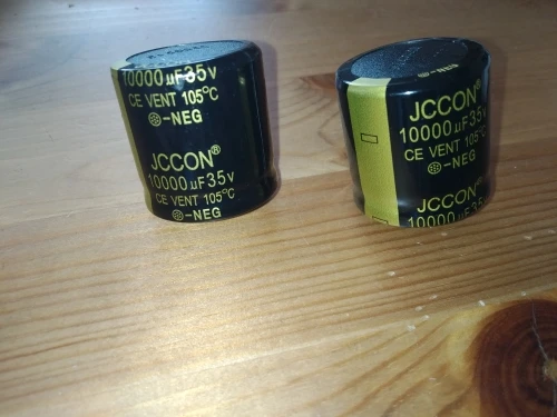 Товар получен. Емкости немного различаются. 11,56mF и 12,45mF. На фото, похоже, дата выпуска. Брал до этого 10000х35 диаметром 18 мм, вздулись через полгода. Посмотрим сколько эти натерпят. Доставка из России - 4 дня в Пермский край курьером