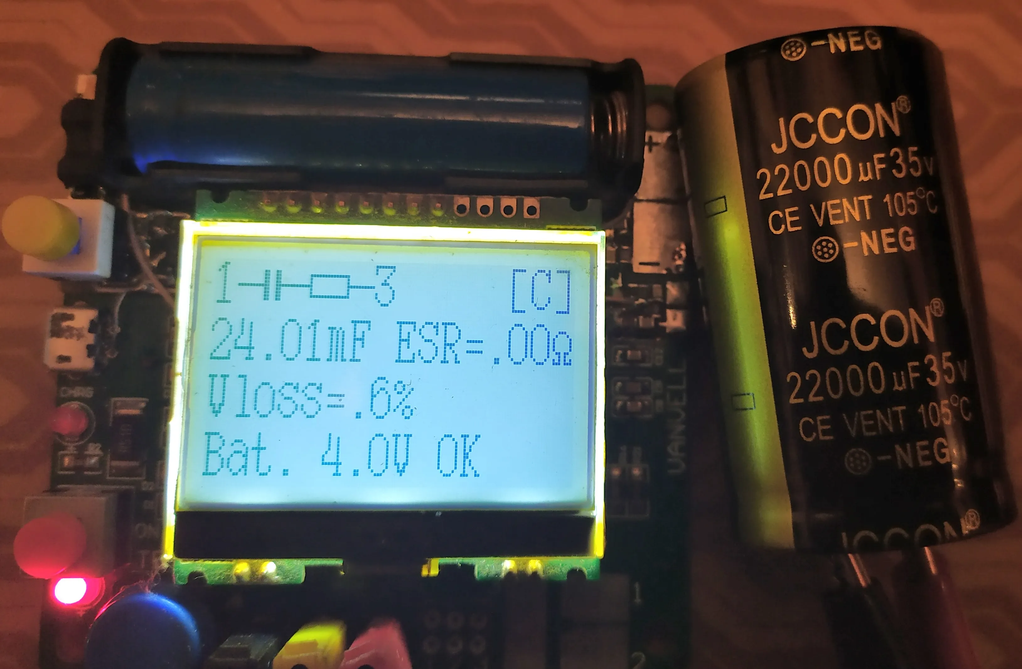 The capacity is about 10.2 mF, but I can't believe how such small caps can have so much capacity