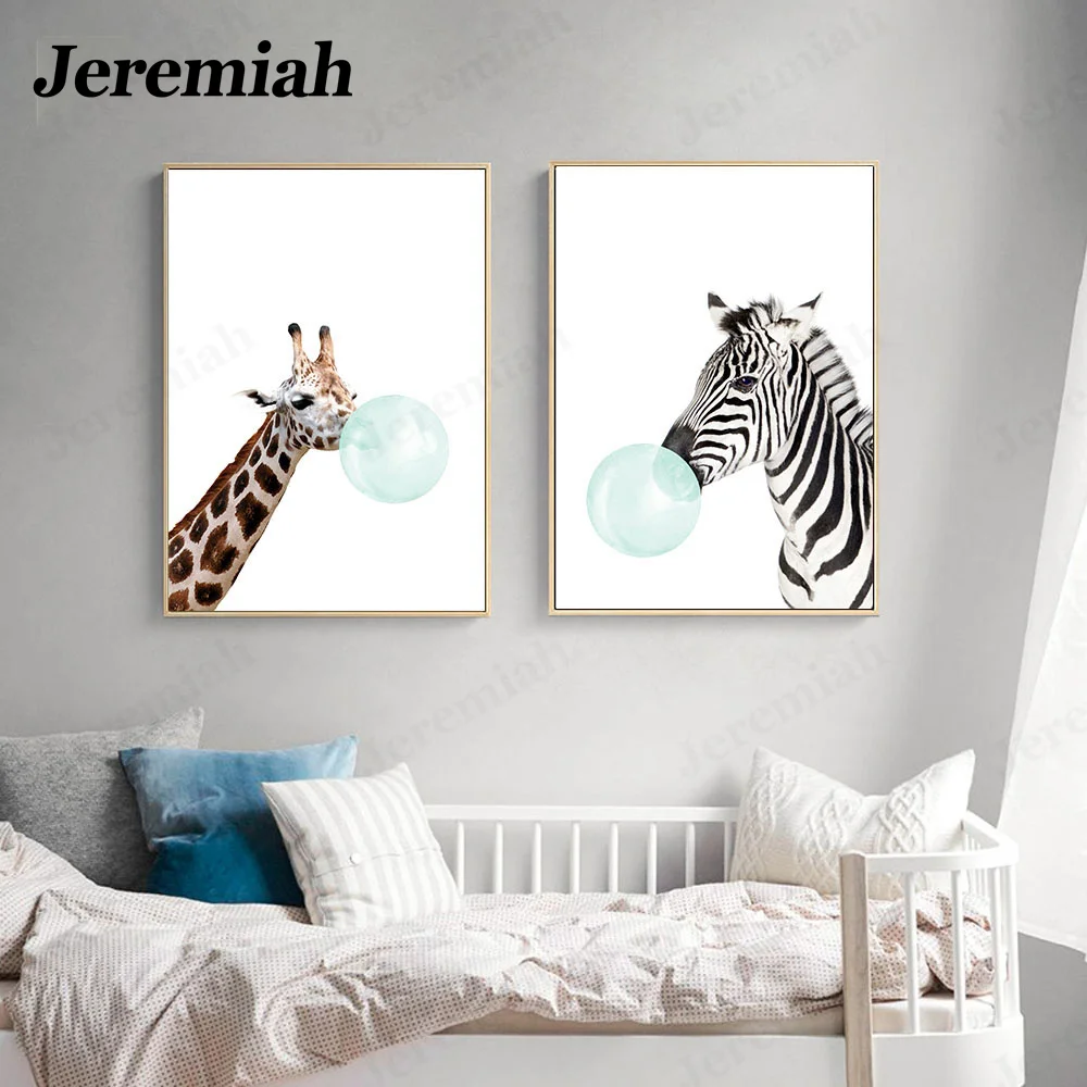 Скандинавский минималистичный постер с изображением животных на холсте зебра жираф слон коала украшение для детской спальни