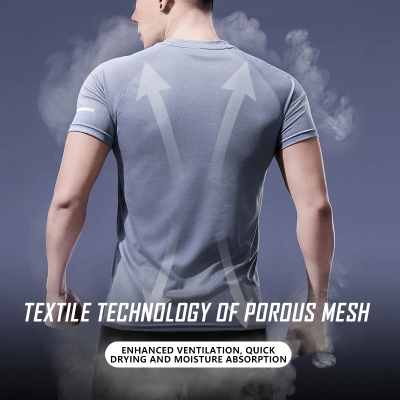 Футболка мужская для спортзала, однотонная приталенная спортивная одежда из полиэстера, Повседневная футболка для бега