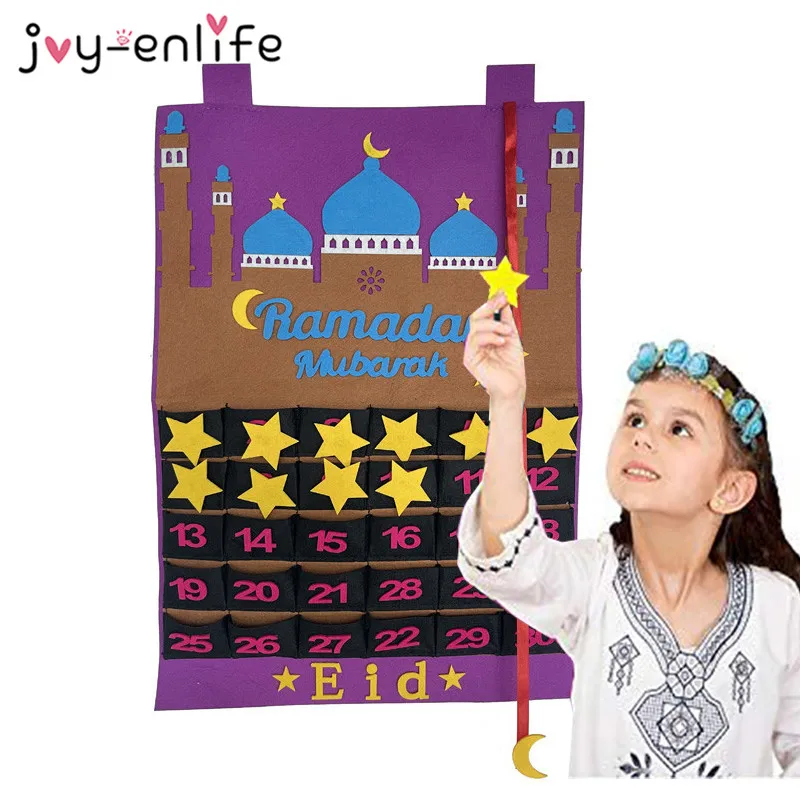 Рамадан Мубарак Адвент календарь Рамадан Карим Декор висит войлок календарь обратного отсчета для детей Подарки Рамадан украшения Ид 2022