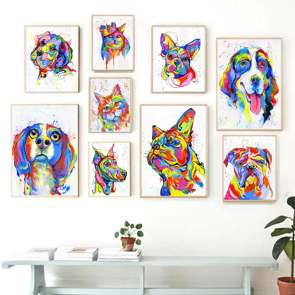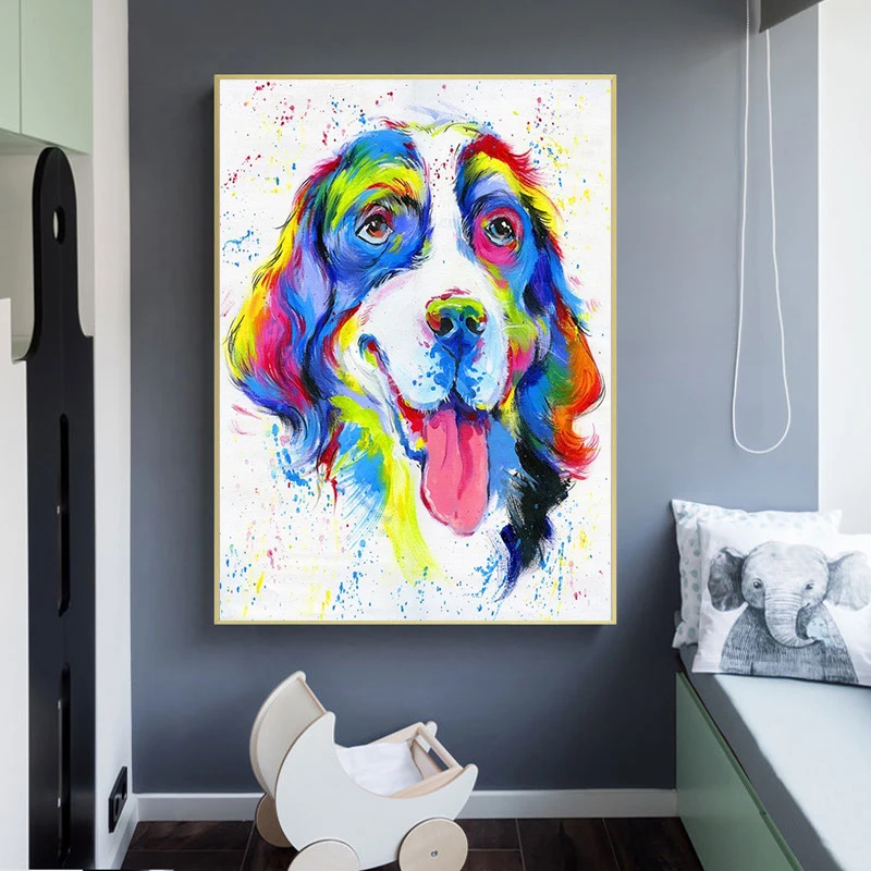 Настенная картина симпатичная собака, абстрактные постеры и принты в современном стиле, настенные картины для гостиной, домашний декор без рамки