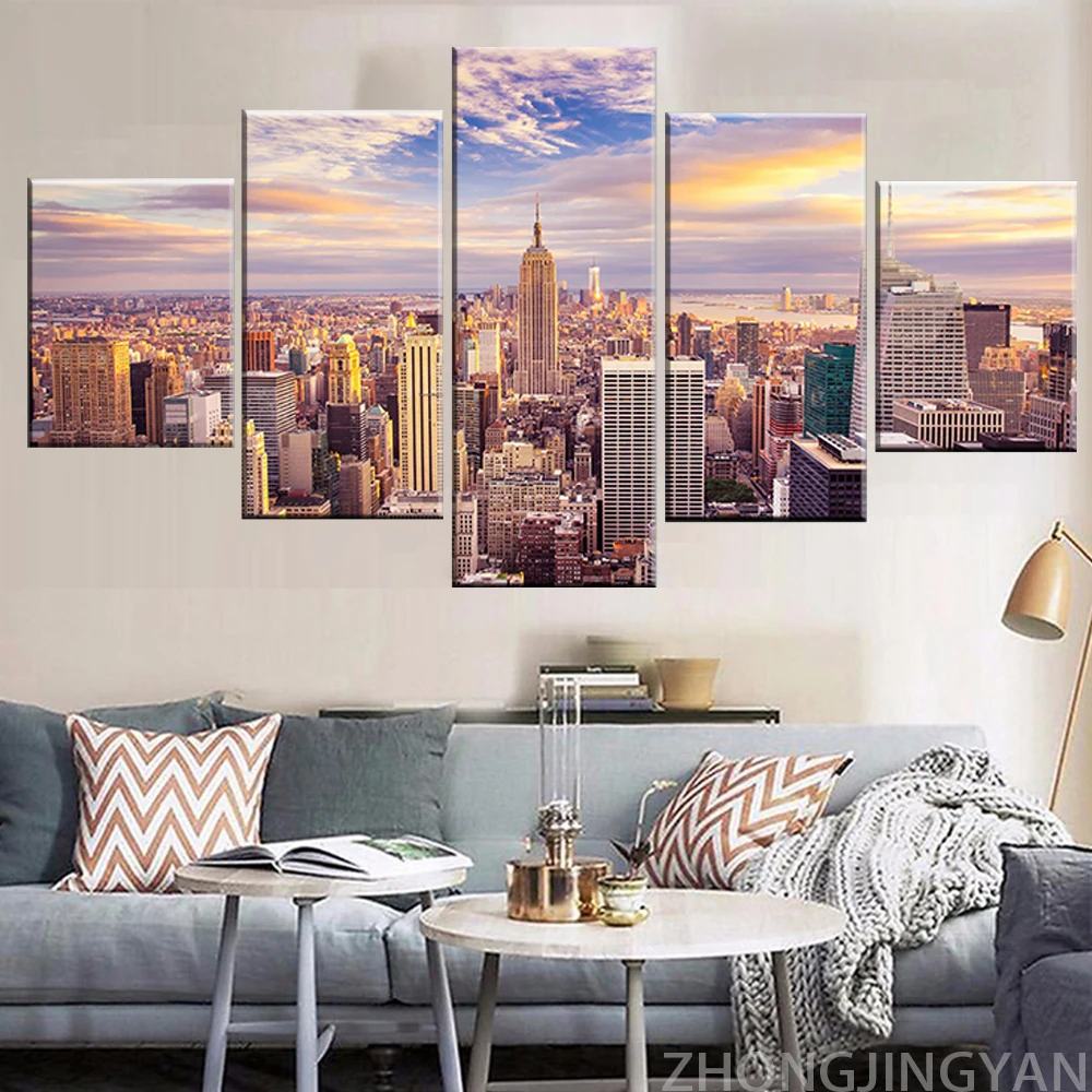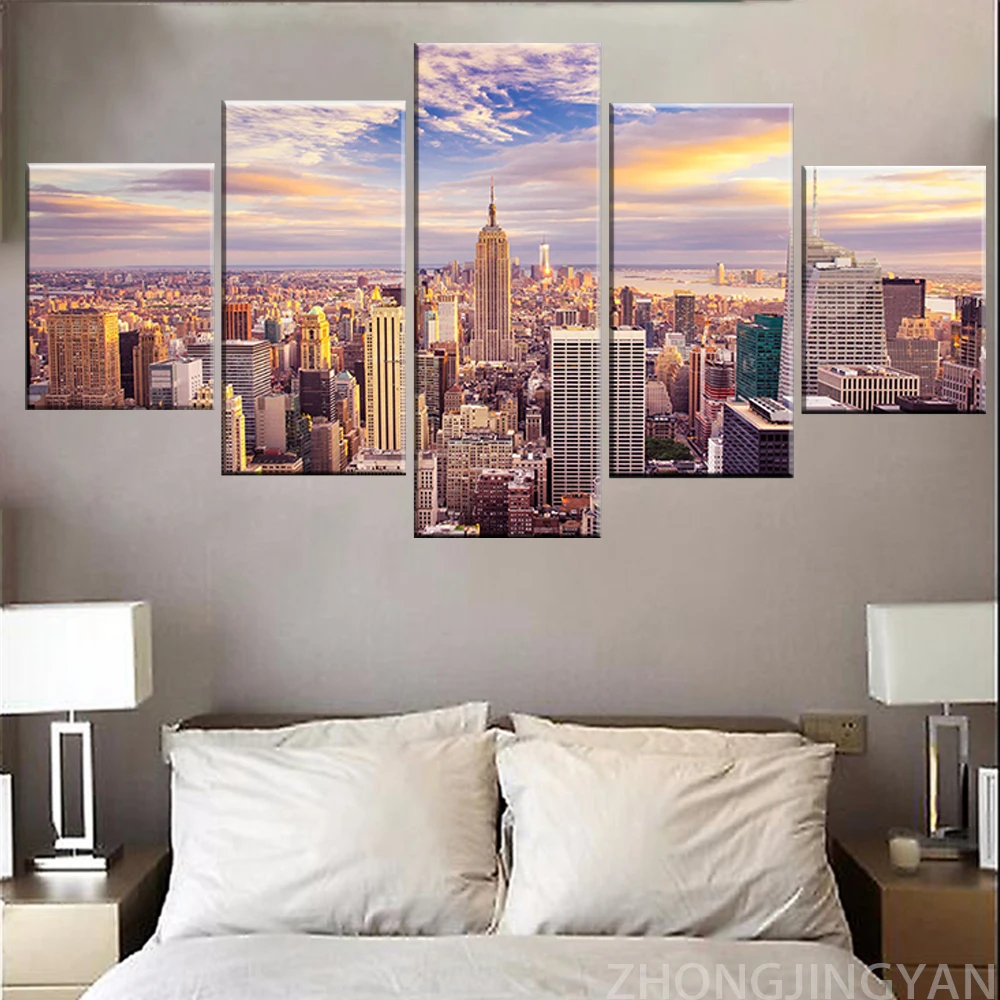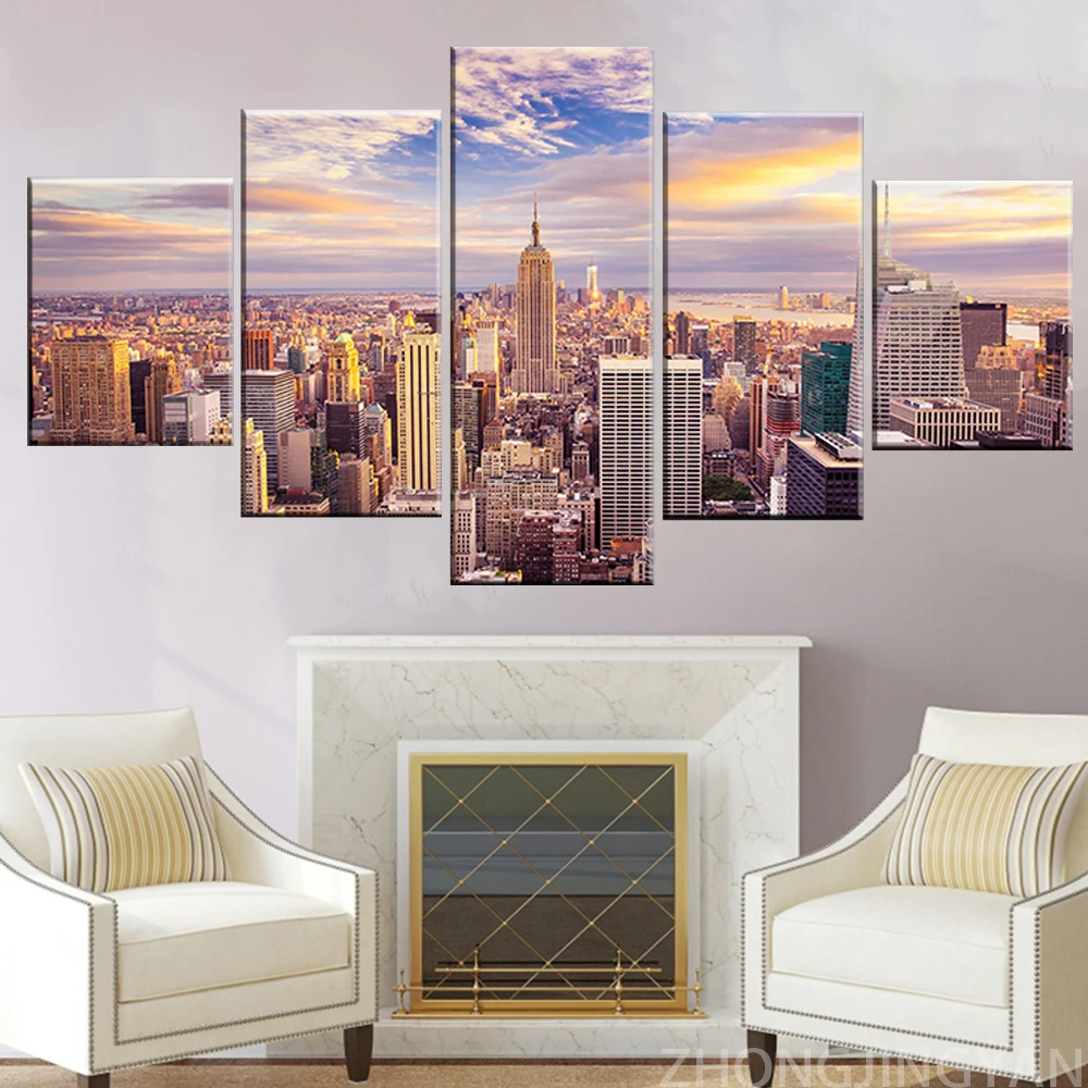 (В рамке) 5 шт. здание Нью-Йорка Настенная картина декор дома гостиная холст печать на стену Печать на холсте