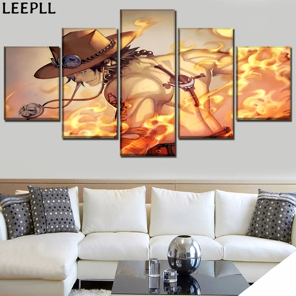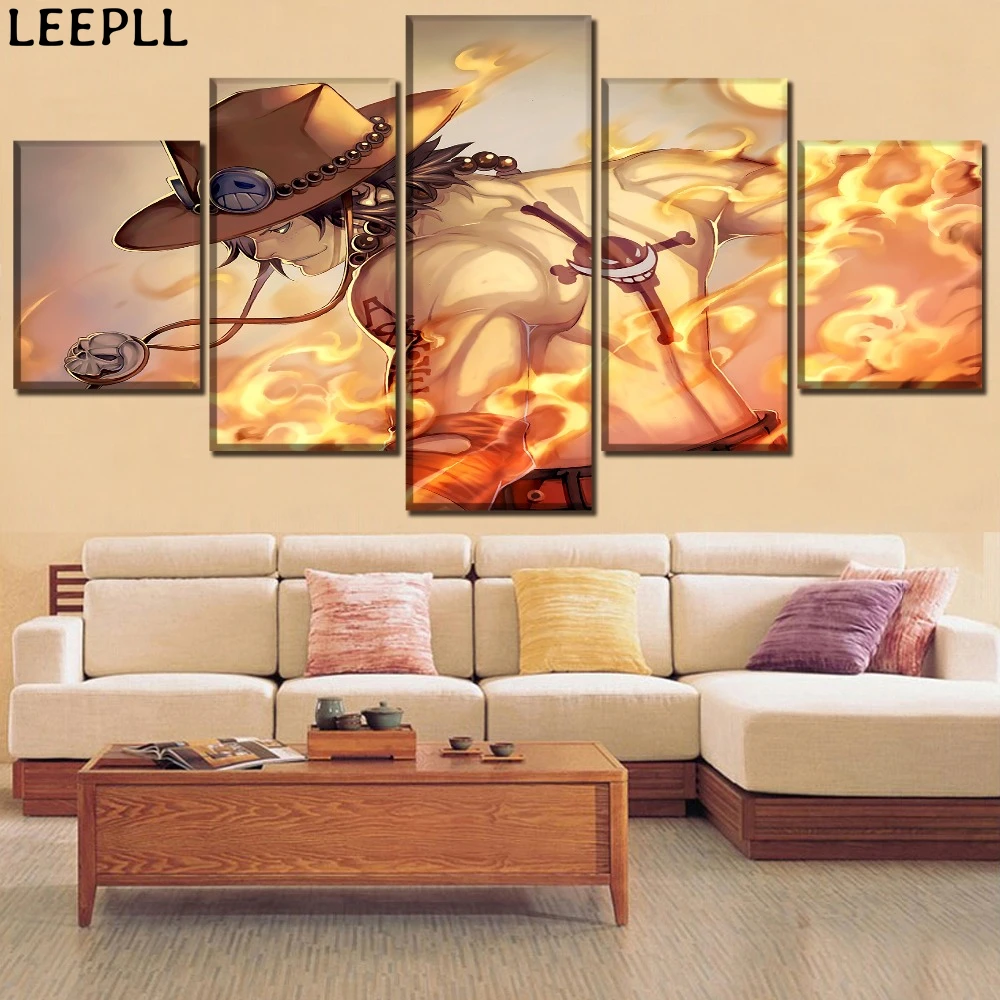 Домашний декор один комплект каркас или без рамки 5 панелей Аниме One Piece Portgas D. Ace плакат Современная Настенная Картина на холсте